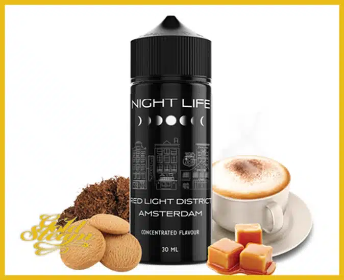 CompareNight Life – Red Light District. Επάξια θεωρείται ένα από τα καλύτερα καπνικά υγρά, συνδυασμένο άψογα με το ιταλικό ταμπεραμέντο του από το πρώτο δευτερόλεπτο. Πλούσια γεύση καφέ καπουτσίνο με λαχταριστά μπισκότα βουτύρου, φτιαγμένο για τους εραστές της απόλαυσης! Απολαύστε μια φίνα συνταγή που θα σας συντροφεύει όλη μέρα. Γλυκές και γήινες νότες με πλούσιο άρωμα, ότι καλύτερο για ένα ευχάριστο πρωινό ξύπνημα έπειτα από ένα περιπετειώδες Nightlife!!!
